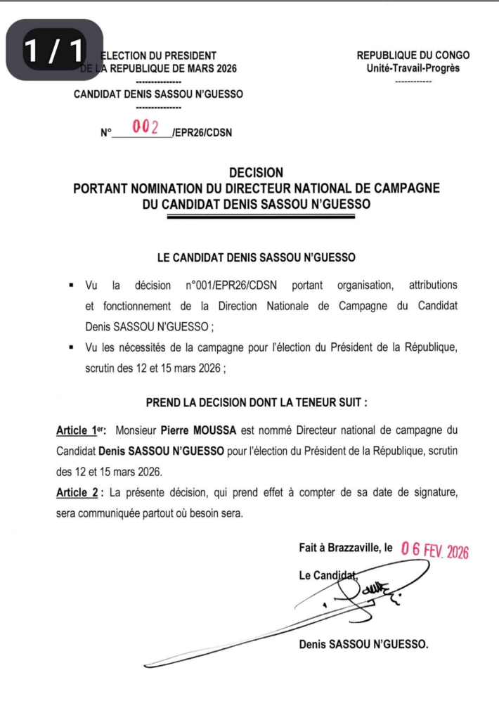 À quelques semaines du scrutin, ce choix stratégique traduit la volonté de Denis Sassou-N’Guesso de s’appuyer sur un leadership éprouvé pour porter son projet, fédérer les énergies et convaincre les électeurs.