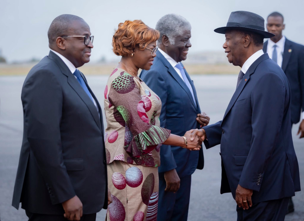 Le vice-président Koné Tiémoko Meyliet ainsi que plusieurs membres du gouvernement étaient présents à l’Aéroport international Félix Houphouët-Boigny pour l’accueillir.