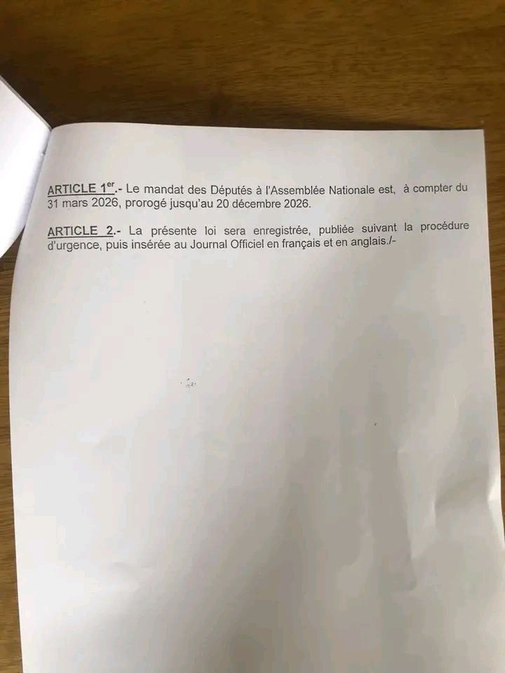 Le projet de loi N° 2092/PJL/AN portant prorogation du mandat des députés a été officiellement déposé à l’Assemblée nationale. Le texte prévoit une extension du mandat actuel du 31 mars au 20 décembre 2026. Selon l’exposé des motifs, cette mesure s’appuie sur l’article 15 (4) de la Constitution, invoquant des contraintes économiques et organisationnelles.